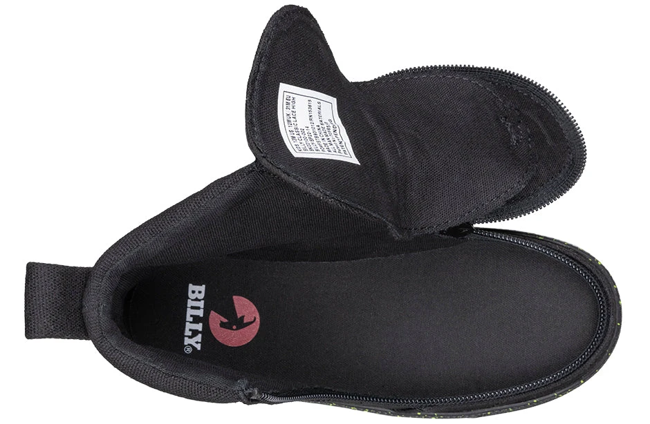 A classic silhouette with some added speckles thrown in, your kiddo is going to love their Black/Green Speckle BILLY Classic Lace High Tops. This silhouette features the full wrap zipper allowing the wearer unobstructed entry. Step in, zip up, and get after the day!