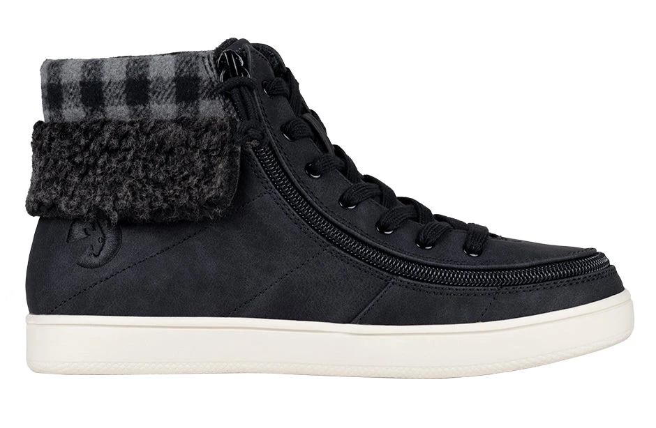 A trendy look to the Classic High Top, the Women’s Black/Charcoal BILLY Cuffs are sure to receive compliments. Combining fashion with function, Step In! unobstructed in seconds. These flannel and faux suede kicks have a soft feel and fur collar for extra comfort. Use the functional laces to get the fit right, and then use the wraparound zipper henceforth. And with the multi-density foam and silica gel insoles, you’ll have cushion where you want it and support where you need it. Enjoy!