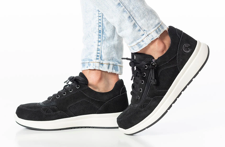 You cannot go wrong with casual women’s fashion. These stylish Women’s Black Suede BILLY Comfort Joggers tout a wraparound zipper making donning and doffing simple. No more stuffing your feet into shoes — Step In! and go about your day. These real suede leather shoes are a must for your wardrobe.Â