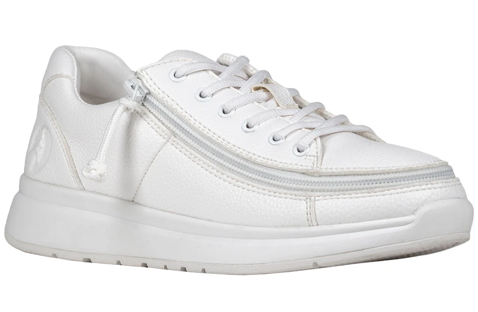 Looking for function in a slip-resistant women’s work shoe? Then look no further! These all-white comfort shoes utilize a wraparound zipper making donning and doffing simple. No need to stuff your feet into shoes—drop your foot in unobstructed and get to work! These faux leather shoes range in size from US Women’s 6 to US Women’s 11, with 1/2 sizes through size 10.